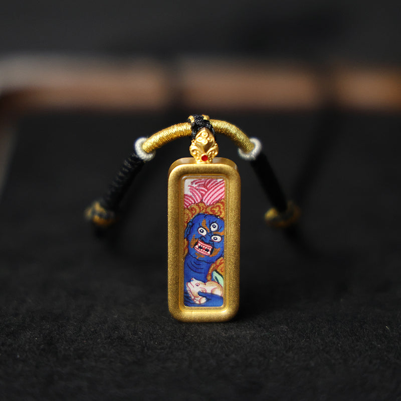 Crafted with natural mineral pigments and encased in an 18K gold Gau box, it captures his fierce yet benevolent essence. The black-gold braided cord adds modern elegance, making it ideal for daily wear while honoring tradition.