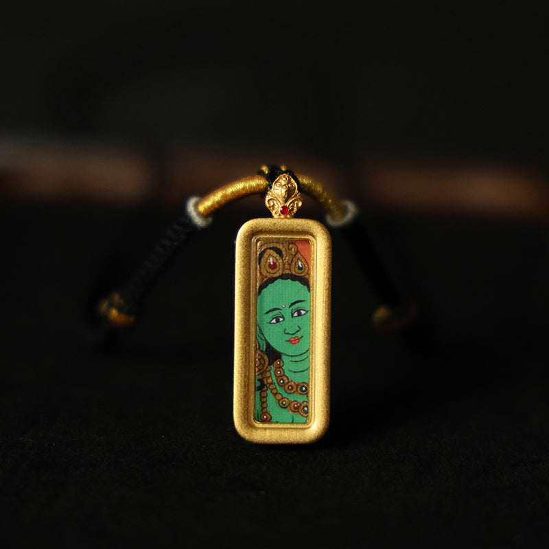 Green Tara, the core emanation of the Savior Mothers in Tibetan Buddhism, symbolizes "compassionate salvation from suffering and protection of well-being." This Thangka necklace turns her "mercy vows" into a portable treasure.