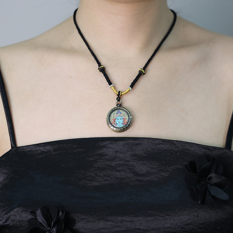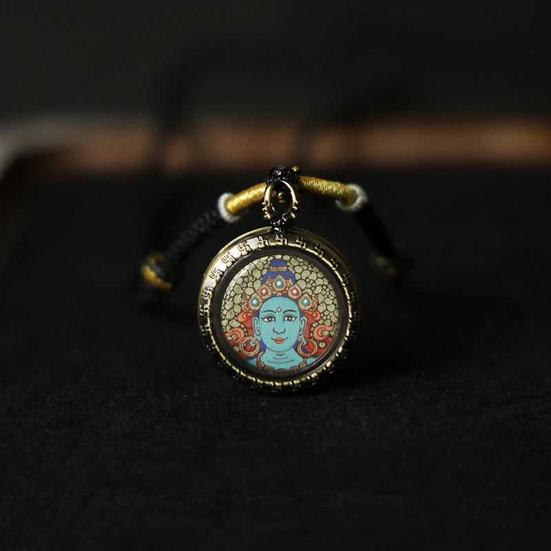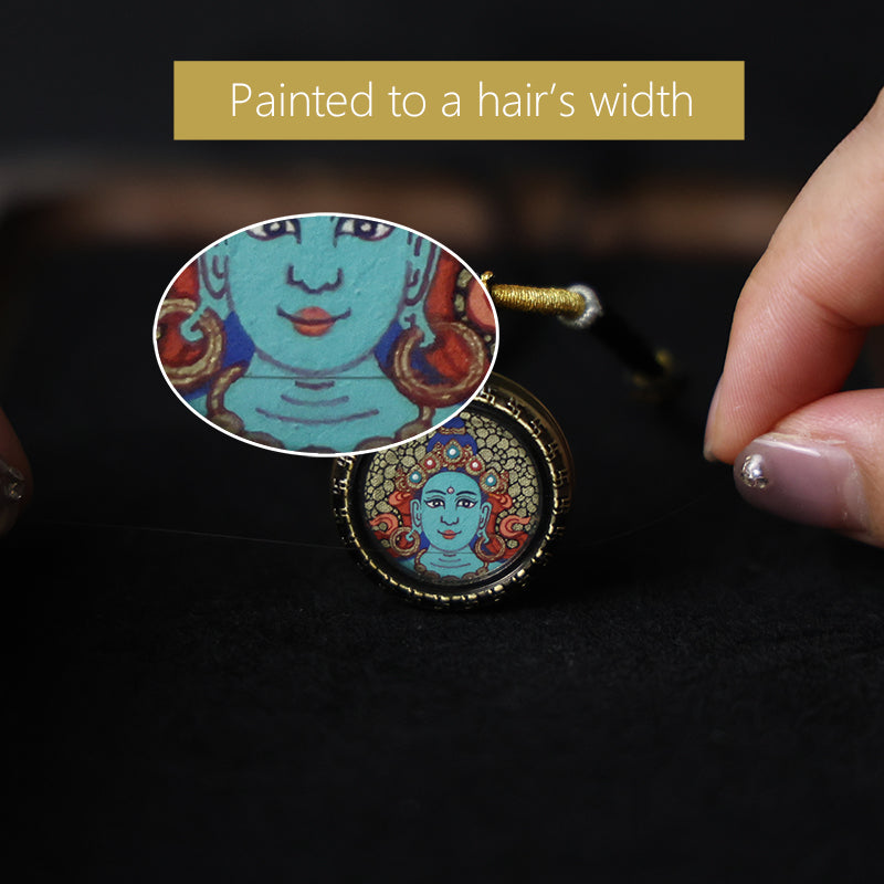 Wearing this Green Tara Thangka is like carrying a "portable field of compassion." The Regong’s meticulous brushwork, gold foil fragment texture, and vibrant mineral colors weave ancient spiritual wisdom into modern life, a tangible reminder that safety and vitality walk with you every day.