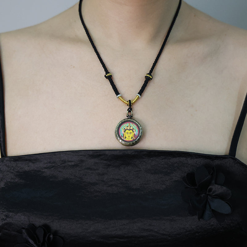 Wearing this round Thangka is like carrying a "portable wisdom amulet." It links Tibetan spiritual wisdom—"focusing the mind, deepening cognition, and resolving stubbornness"—to modern life. Manjushri’s blessing of enhanced wisdom stays with you daily, turning his ancient insight into a quiet companion for clearer decisions and inner clarity.