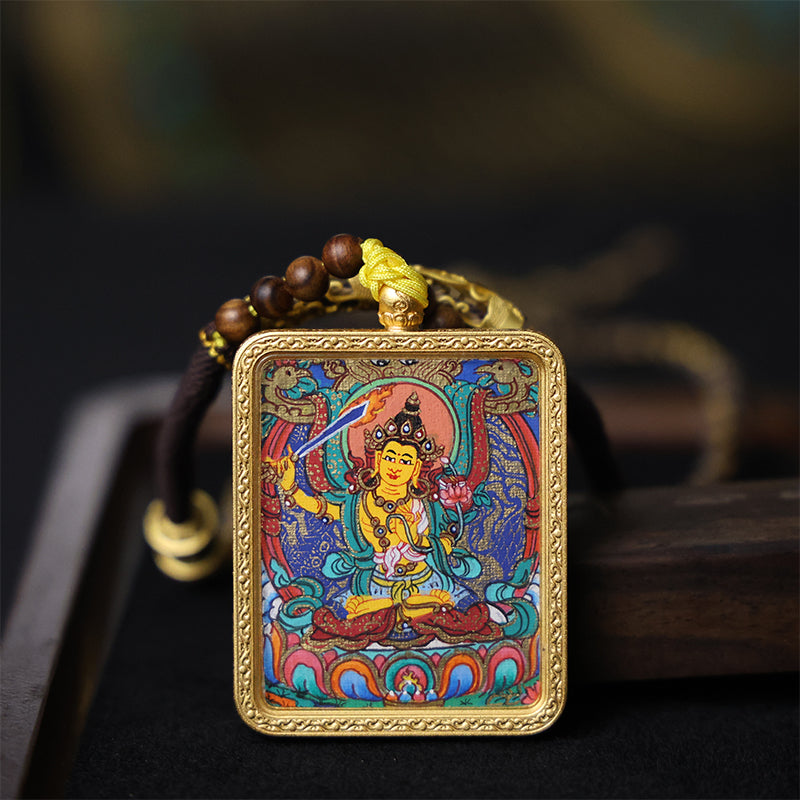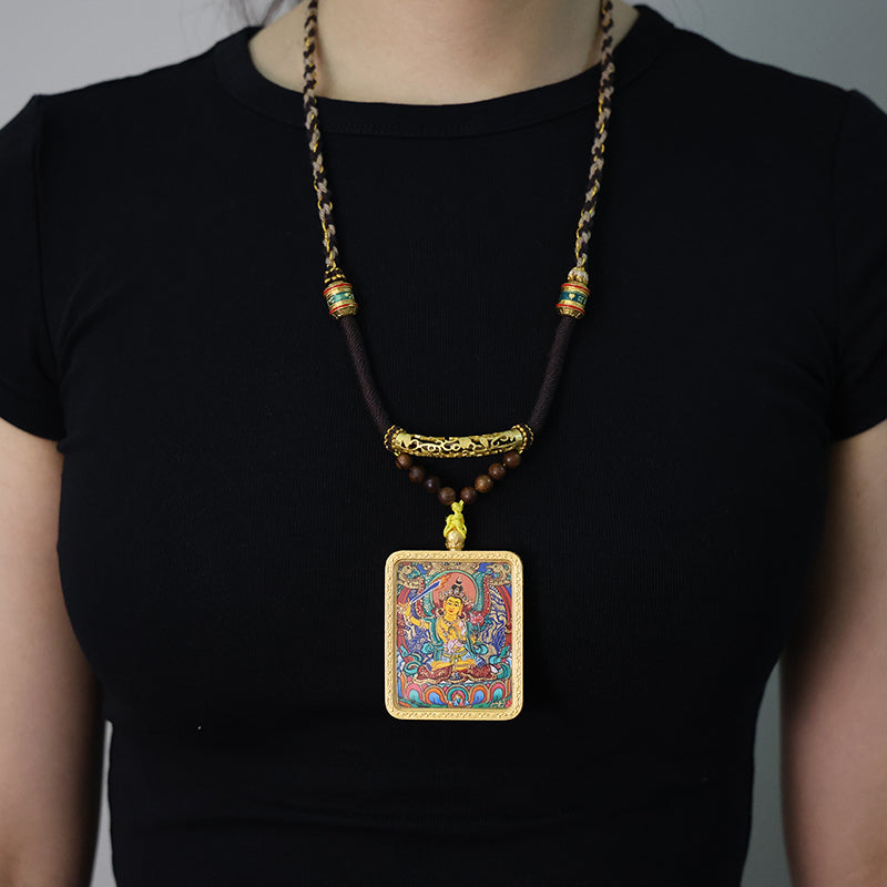 Wearing this Manjushri Thangka necklace is like carrying a "portable beacon of wisdom"—it weaves ancient spiritual insights into modern life. Every glance reminds you: the clarity to solve problems, the focus to pursue goals, and the intellect to see truth are always with you—turning "wisdom" from an abstract idea into a tangible, daily companion.