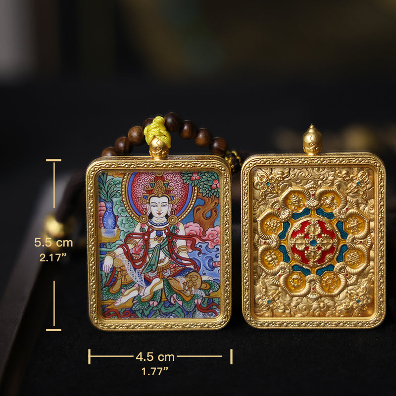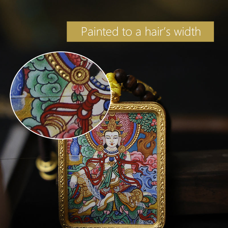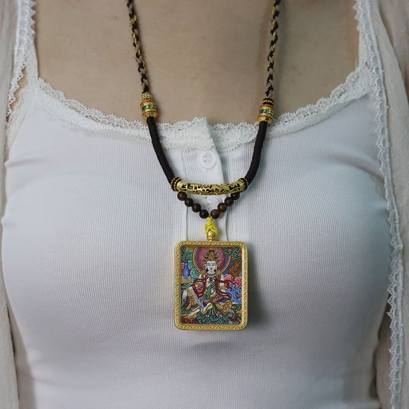 Wearing this Thangka necklace is like carrying a "portable mirror of compassion"—it weaves the profound Dharma of "mercy illuminating emptiness" into modern life, a gentle reminder that wisdom and benevolence walk with you every step.