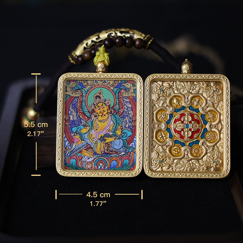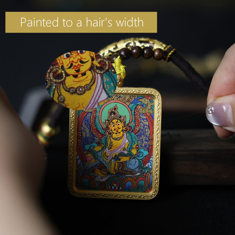 Yellow Jambhala, the core manifestation of Tibetan Buddhist "Wealth Protector", symbolizes "protecting sentient beings' wealth with compassion and eliminating poverty". His bright yellow body , sitting cross-legged on a lotus throne, left hand holding a treasure-spitting ratand right hand in the granting wish mudra reflect his vow to bestow fortune.